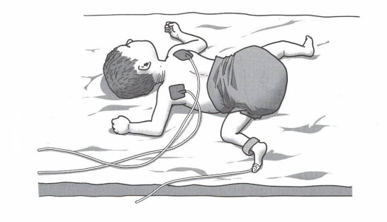 11 NICUに入院中の低出生体重児。在胎週数30週。腹臥位での姿勢を図に示す。