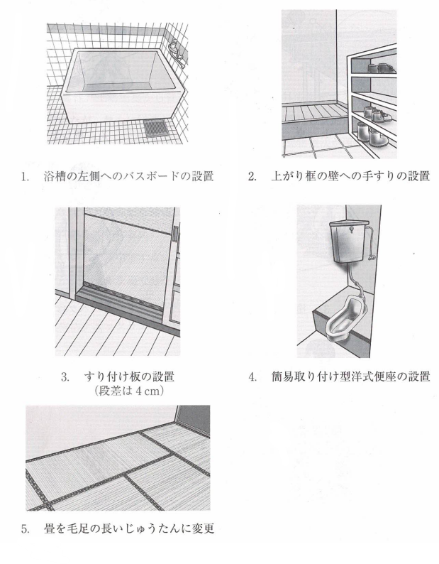 1.× 浴槽の左側へのバスボードの設置より優先度が高いものがほかにある。なぜなら、バスボードの設置は、浴槽またぎの負担軽減、つまり座位で移乗しやすくするためのものであるため。本症例の最優先事項は、しゃがみ込みで後方転倒歴があるため、まず最優先は「しゃがむ/立ち上がる」を減らすことである。